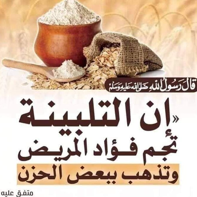 ▫ ما هي التلبينة ؟ هي خليط من طحين الشعير والماء والحليب وتحلى بالعسل. وهي طعام يعالج به المريض، وتخفف عن المحزون حزنه ، وتنشط القلب وتريحه. لماذا سميت بالتلبينة ؟ – سميت تَلْبينة تشبهاً لها باللَّبَن لبياضها ورقتها. ماورد في السنة عن التلبينة: ▫قال رسول الله صلى الله عليه وسلم : (( التَّلْبِينَةُ مُجِمَّةٌ لِفُؤَادِ الْمَرِيضِ، تَذْهَبُ بِبَعْضِ الْحُزْنِ )) ” رواه البخاري ومسلم “. ▫عن عائشة رضي الله عنها أنها كانت لتأمُرُ بالتَّلبينِ للمريضِ وللمَحزونِ على الهالِكِ، وكانت تقولُ : إني سَمِعْتُ رسولَ اللهِ صلَّ اللهُ عليه وسلَّم يقولُ : (إن التَّلبينَةَ تُجِمُّ فؤادَ المريضِ، وتَذهَبُ ببعضِ الحَزَنِ). “رواه البخاري “. ▫ عن عائشة رضي الله عنها قالت : كان رسولُ اللهِ صلَّى اللهُ عليه وسلَّمَ إذا أخذ أهلَه الوَعْكُ ، أمر بالحساءِ فصُنِعَ ، ثم أمرهم فحسَوا منه ، وكان يقول : (إنه لَيرتُو فؤادَ الحزينِ ، ويسرو عن فؤادِ السَّقيمِ ، كما تَسرو إحداكنّ الوسخَ بالماءِ عن وجهِها). ” رواه الترمذي “.